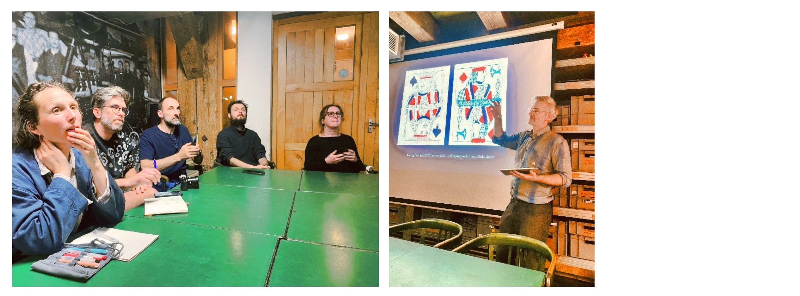 De tweede dag starten we met een reflectiemoment samen met het eigen team van het Turnhoutse speelkaartenmuseum. We nemen de tijd om samen terug te blikken op de eerste dag van onze uitwisseling en ons voor te bereiden op de dag die voor ons ligt. Een intense dag, daar zijn we het allemaal over eens.