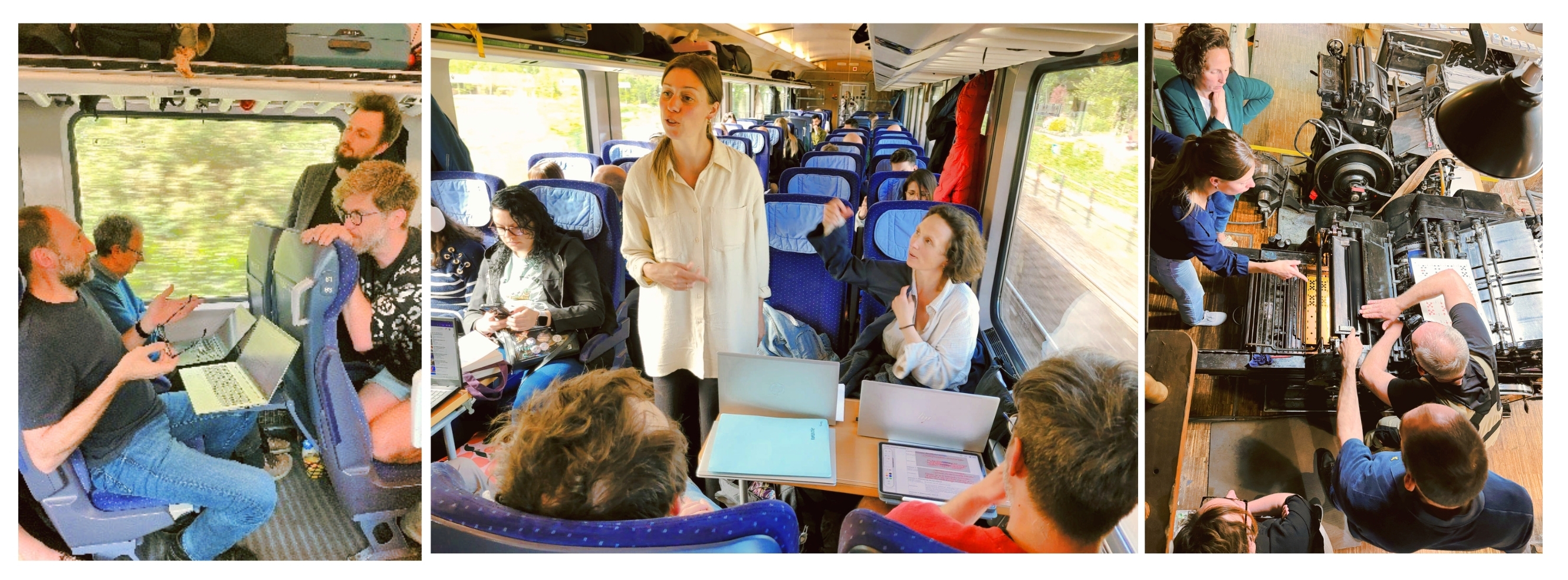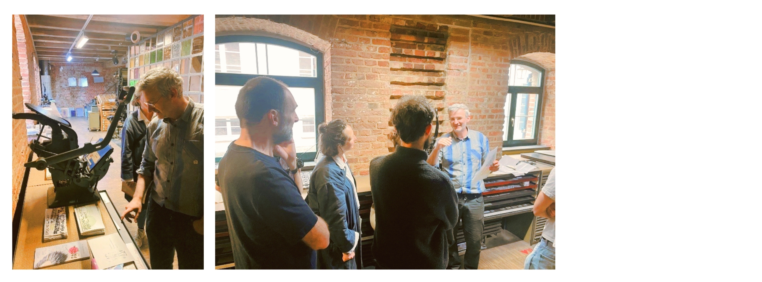 Met een grote glimlach opent Christian, onze contactpersoon bij Spiefa, de deur van het museum. We draaien wat onwennig rond in de ruimte, die tegelijk groot en klein aanvoelt. Op een kleine oppervlakte staan tientallen drukmachines opgesteld. Hier en daar staat iemand gebogen over één van de drukpersen. Nadat we hebben plaatsgenomen breekt Christian het ijs met een presentatie over de geschiedenis van Spiefa. Hij opent met foto’s van Feste Drucken, een drukfestival dat Spiefa jaarlijks organiseert, telkens op een andere locatie en met een mix van professionele kunstenaars en amateurs. Het festival sluit naadloos aan bij een van Spiefa’s missies: het drukkersverleden van Stralsund inzetten als verbindend element voor de lokale gemeenschap.
